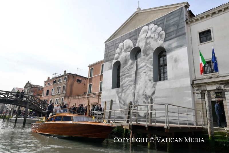 Je désirais beaucoup venir à la Biennale d’art de Venise pour rendre une visite, comme une bonne habitude entre amis. En juin dernier, j’ai eu la joie d’accueillir un grand groupe d’artistes à la Chapelle Sixtine. Aujourd’hui, c’est moi qui vient « chez vous » pour vous rencontrer personnellement, pour me sentir encore plus proche de vous et, ainsi, vous remercier pour ce que vous êtes et ce que vous faites. Et en même temps, d’ici, je voudrais envoyer à tous ce message : le monde a besoin d’artistes.