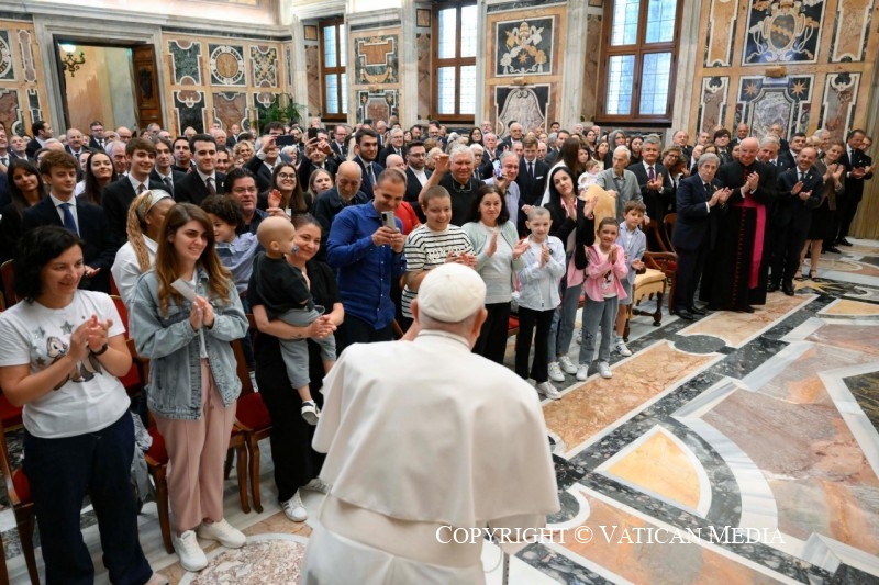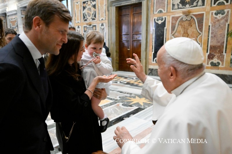 Chers frères et sœurs, merci d’être venus ! Je vous confie à la protection du Salus Populi Romani et je vous bénis tous ainsi que vos familles. N’oubliez pas de prier pour moi, de prier pour moi, bien sûr ! Je vous remercie.