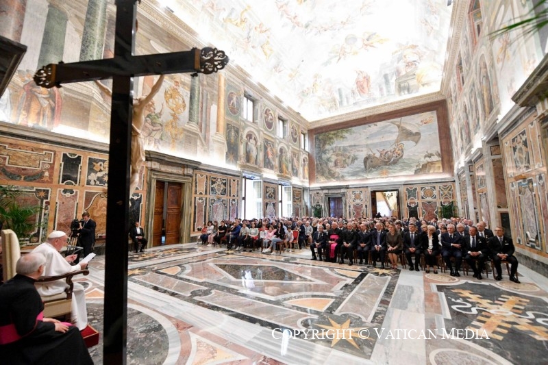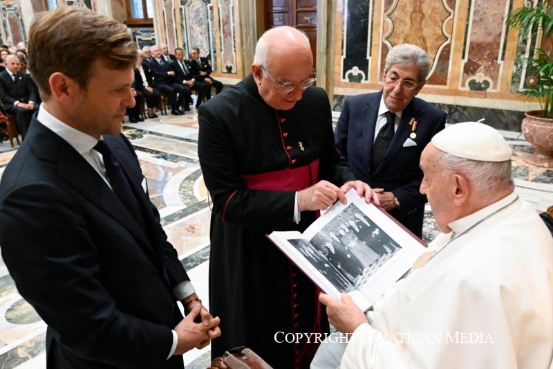 Je suis toujours heureux de vous rencontrer, parce que mon audience avec vous est placée sous le signe de la gratitude, qui est le bon « goût » de la vie. En vous accueillant dans le Cercle Saint-Pierre, je ressens de la gratitude pour le service que vous rendez aux pauvres de Rome. Et je sais que vous le faites au nom du pape, au nom de la Sainte Mère l’Église. J’adresse mes salutations à votre président, qui est malade. Je lui souhaite un prompt rétablissement ; je vous prie de lui transmettre mes salutations.