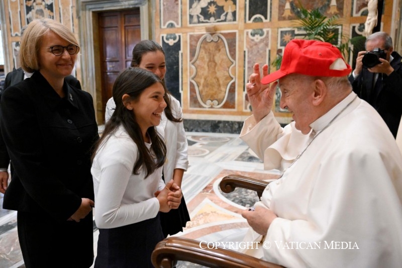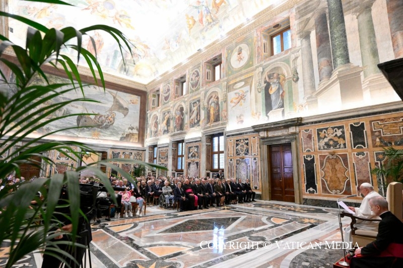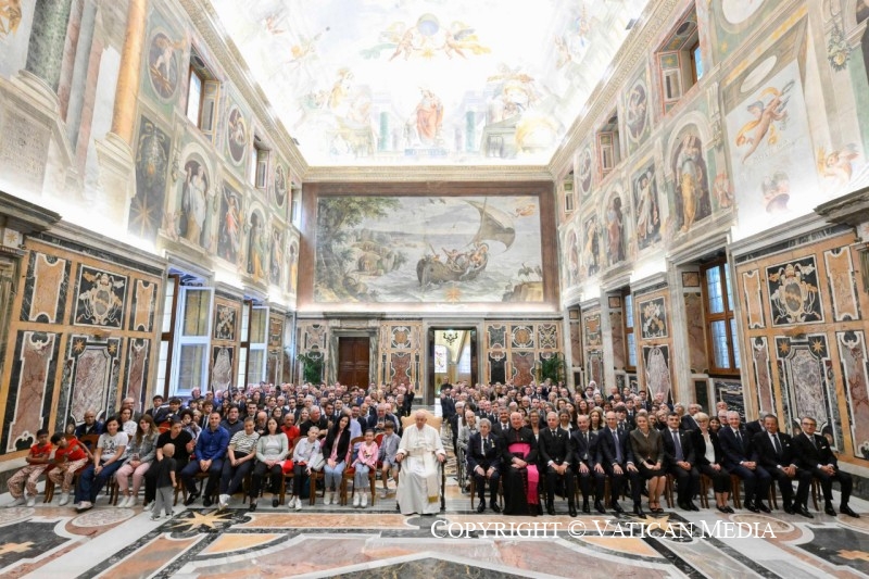 Mais je voudrais aussi vous dire : attention à ne pas « muséaliser » votre histoire, à ne pas « stériliser » vos racines ! La mémoire est l’organe de l’avenir, tant que les racines restent vivantes. C’est pourquoi je vous encourage à transmettre aux jeunes votre patrimoine de valeurs et d’expériences. Comme il est agréable de penser qu’un grand-père du Cercle Saint-Pierre transmet son expérience à son petit-fils ! Ils sont si nombreux ici, c’est beau. Pensez à la richesse de la foi vécue, de la charité concrète, de l’amour des pauvres qui peut être transmise à travers l’exemple d’une personne âgée. Et pensez à l’énergie, à la créativité, à l’élan qu’un jeune peut donner.