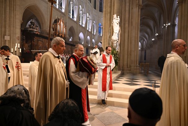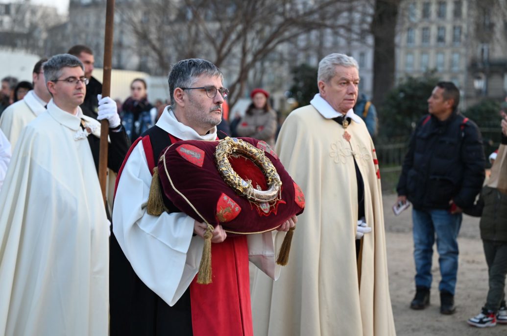La couronne d’épines, portée selon la tradition par Jésus-Christ lors de sa crucifixion, a été la pièce maîtresse d’une célébration liturgique solennelle présidée par Mgr Laurent Ulrich, archevêque de Paris. L’événement, auquel ont participé des fidèles qui avaient réservé leur place à l’avance, s’est déroulé dans un profond recueillement. « Nous sommes ici pour accompagner la Sainte Couronne dans sa nouvelle demeure », a déclaré l’archevêque aux fidèles rassemblés.