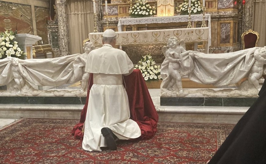 Ensuite, avec la communauté, le pape s’est rendu dans une salle intérieure pour un entretien privé. A la fin, le pape est apparu au portail de la basilique et, saluant les personnes présentes, il leur a adressé quelques mots, exprimant sa joie d’avoir pu venir prier Notre-Dame du Bon Conseil, « un si grand don » pour les habitants de Genazzano, d’où naît aussi une grande responsabilité : « de même que la Mère n’abandonne jamais ses enfants, vous aussi vous devez être fidèles à Notre-Dame ».