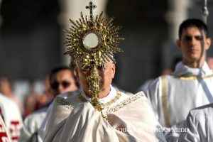 « Que cette célébration soit un signe lumineux de notre engagement à être chaque jour, à partir de l’autel et du tabernacle, porteurs de communion et de paix les uns pour les autres, dans le partage et la charité » a dit le pape dimanche midi sur la place Saint-Pierre, lors de la récitation de l’Angelus.