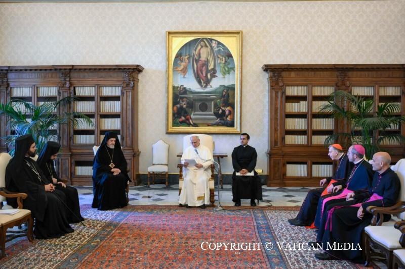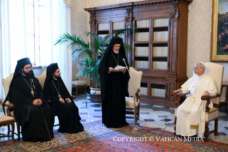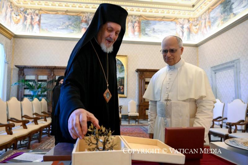 Après des siècles de désaccords et d’incompréhensions, la reprise d’un dialogue authentique entre les Eglises sœurs de Rome et de Constantinople a été possible grâce aux pas courageux et clairvoyants accomplis par le Pape Paul VI et le Patriarche œcuménique Athénagoras. Leurs vénérables successeurs aux Sièges de Rome et de Constantinople ont poursuivi avec conviction le même chemin de réconciliation, renforçant davantage nos relations. A ce propos, je souhaite mentionner le témoignage de proximité sincère à l’égard de l’Eglise catholique rendu par le Patriarche œcuménique Sa Sainteté Bartholomée à travers sa participation en personne aux funérailles du Pape François et à la Messe d’inauguration de mon pontificat.