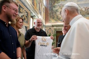 C’est vraiment un don pour nous tous et pour toute l’Église, et je vous remercie sincèrement. Merci à vous pour ce moment et je demande à Dieu de vous bénir et de vous aider à accompagner ces jeunes qui ont tant besoin, eux aussi, de trouver la vraie joie, le vrai bonheur que nous trouvons tous en Jésus-Christ. Bon courage à vous et encore un grand merci !