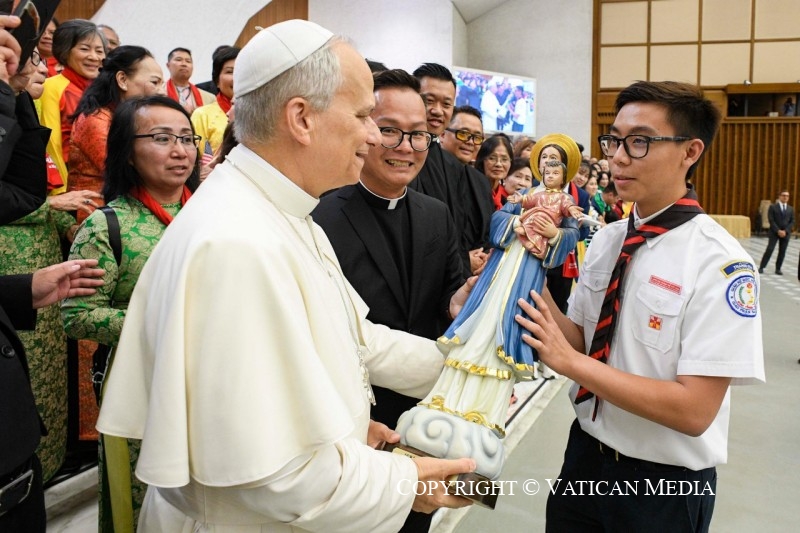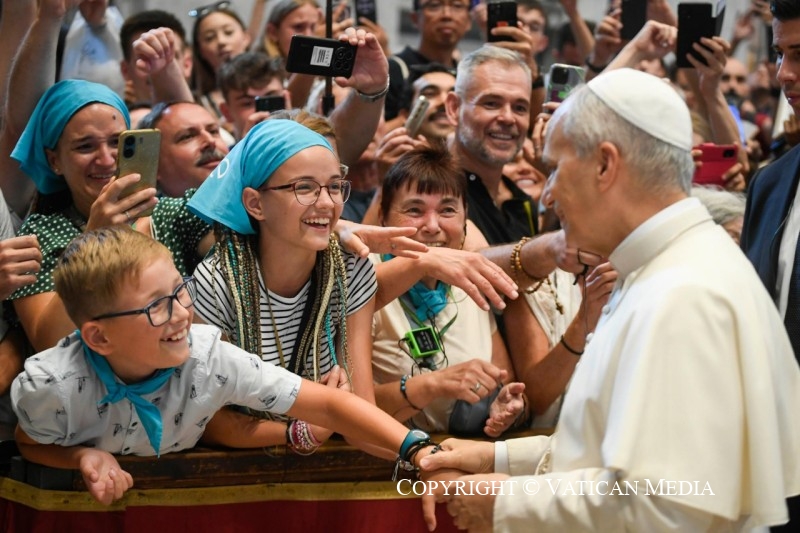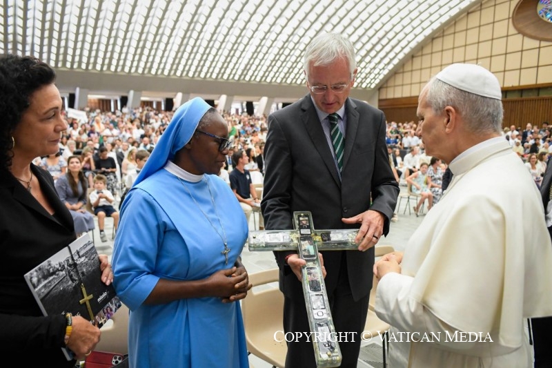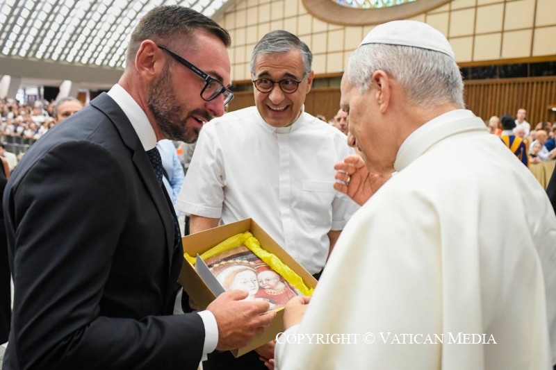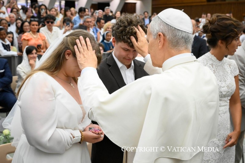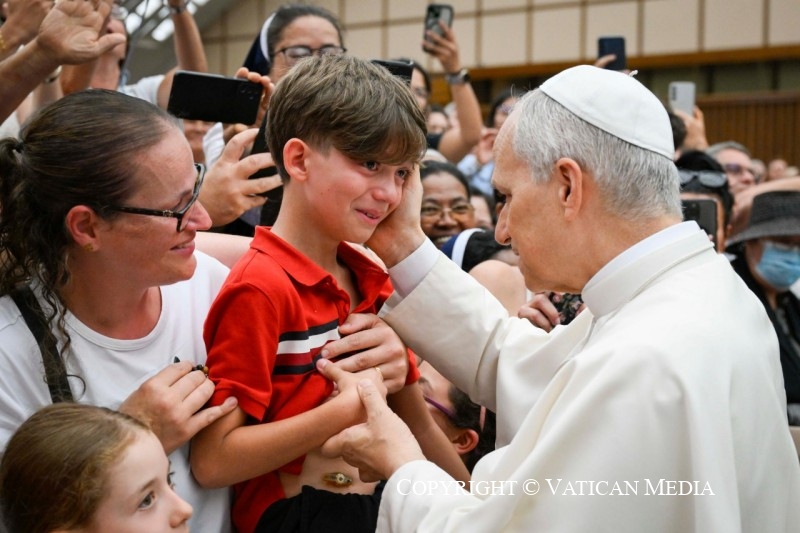 Chers frères et sœurs, apprenons, nous aussi, à nous en remettre à la bonne volonté du Père, en laissant notre vie être une réponse au bien reçu. Dans la vie, tout contrôler ne sert à rien. Il suffit de choisir chaque jour d’aimer librement. Telle est la véritable espérance: savoir que, même dans l’obscurité de l’épreuve, l’amour de Dieu nous soutient et permet au fruit de la vie éternelle de mûrir en nous.