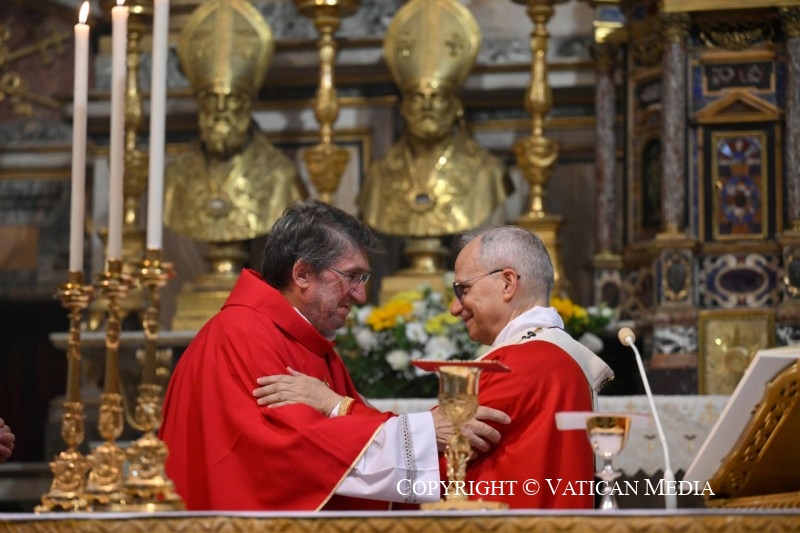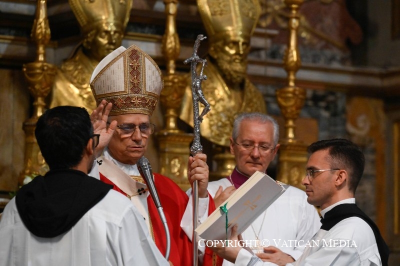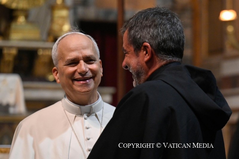 Père Alejandro Moral, Prieur Général, mes frères dans l’épiscopat, Luis et Wilder, et vous tous, mes frères augustiniens, frères et sœurs ici présents. Avant de commencer l’homélie officielle qui est préparée, je souhaite simplement vous saluer. Et pour ceux d’entre vous qui comprennent l’anglais mais pas l’italien : priez pour un don de l’Esprit Saint ! Et peut-être que durant ce bref moment de réflexion sur la Parole de Dieu, et sur ce que le Seigneur vous demande, à vous qui allez ouvrir ce Chapitre général ordinaire, vous recevrez non pas nécessairement le don de comprendre ou de parler toutes les langues, mais celui d’écouter, celui d’être humbles, et celui de promouvoir l’unité, dans l’Ordre, dans l’Église et dans le monde.