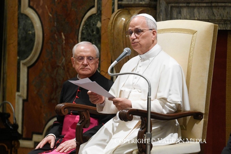 Vous avez réfléchi à des questions d’une actualité urgente, qui me tiennent à cœur, comme aussi à mes prédécesseurs, saint Jean-Paul II , Benoît XVI et François : le développement durable et la protection de la création sont en effet des engagements essentiels pour la survie de l’espèce humaine et ont un impact immédiat sur l’organisation de nos sociétés et sur la possibilité d’une coexistence humaine pacifique et solidaire.