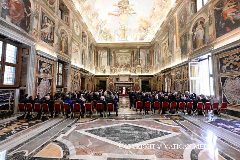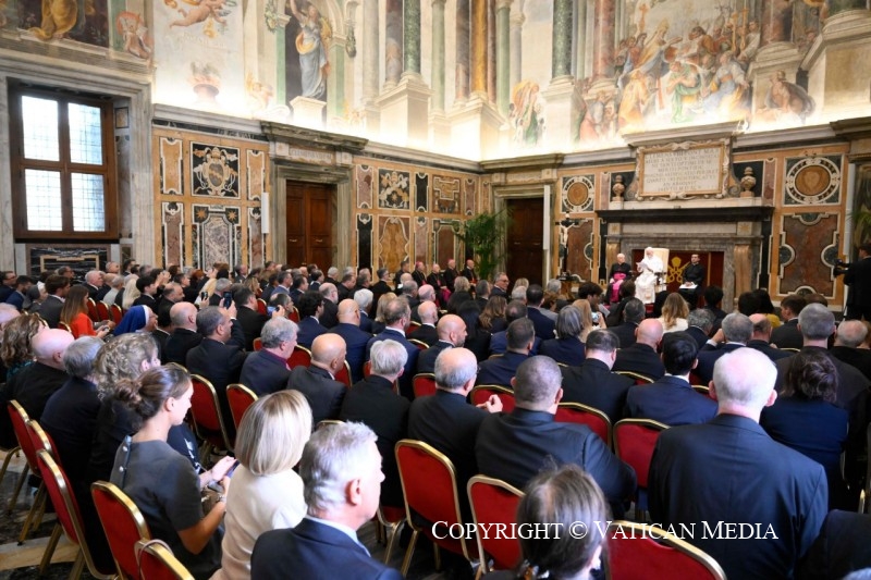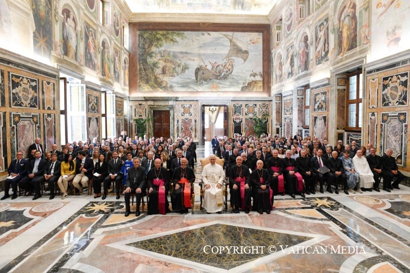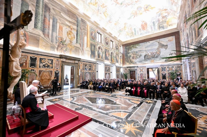Je vous invite donc à cultiver une théologie fondée sur la rencontre personnelle et transformante avec le Christ, visant à s’incarner dans les événements concrets de l’humanité d’aujourd’hui. Je vous encourage à dialoguer non seulement avec la philosophie, mais aussi avec la physique, la biologie, l’économie, le droit, la littérature et la musique, pour vous enrichir et enrichir les autres, pour apporter le bon levain de l’Évangile à différentes cultures, dans la rencontre avec des croyants d’autres confessions religieuses et avec des non-croyants. Ce dialogue ad extra requiert, comme vous le savez, un dialogue ad intra, c’est-à-dire entre théologiens, conscients que le visage de Dieu ne peut être recherché qu’en cheminant ensemble. Je souhaite donc que l’Académie devienne un lieu de rencontre et d’amitié entre théologiens, un lieu de communion et de partage où nous pouvons cheminer ensemble vers le Christ.
