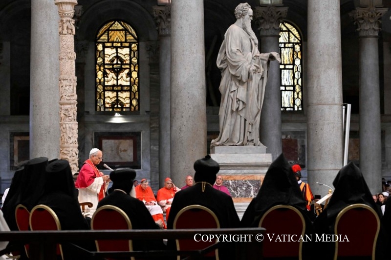 « Pour moi, que la croix de notre Seigneur Jésus Christ reste ma seule fierté. Par elle, le monde est crucifié pour moi, et moi pour le monde » (Gal 6, 14). Ces paroles de l’apôtre Paul, près de la tombe duquel nous sommes réunis, nous introduisent à la commémoration des martyrs et des témoins de la foi du XXIème siècle, en cette fête de l’Exaltation de la Sainte Croix.