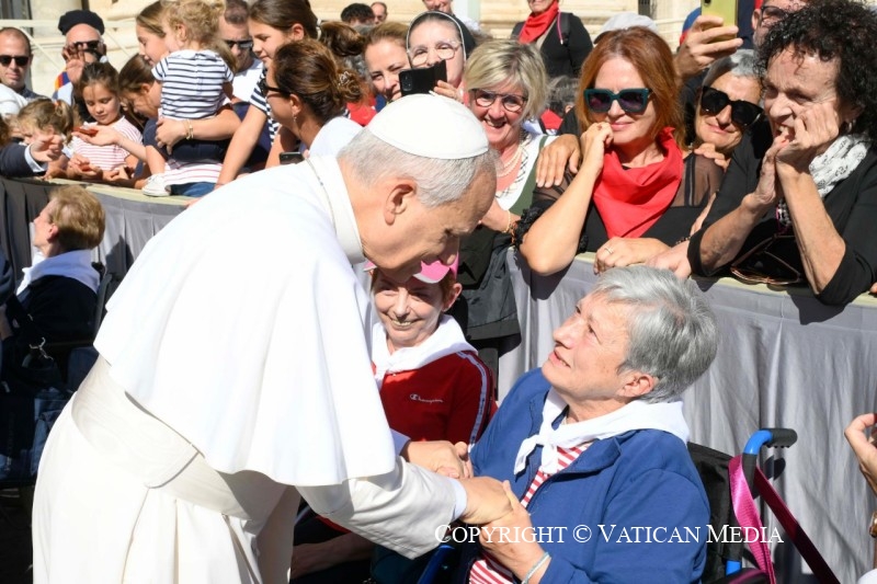 Je salue ensuite le groupe du Renouveau dans l’Esprit du diocèse de Salerne-Campagna-Acerno, la Vicarie de Fossombrone, les militaires de la 46ᵉ brigade aérienne de Pise, la Fédération autonome des banquiers italiens, ainsi que l’Ordre des professions infirmières d’Arezzo.