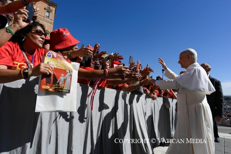 Je viens de dire « pressentons » : ce verbe – pressentir – décrit un mouvement de l’esprit, une intelligence du cœur que Jésus a trouvée surtout chez les petits, c’est-à-dire chez les personnes au cœur humble. Souvent, en effet, les savants pressentent peu, parce qu’ils présument savoir. C’est beau, au contraire, d’avoir encore de l’espace dans l’esprit et dans le cœur, afin que Dieu puisse se révéler. Quelle espérance naît lorsque de nouvelles intuitions surgissent dans le peuple de Dieu !