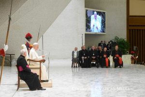 Hier soir, beaucoup d’entre vous sont entrés en dialogue avec la ville de Rome sur quelques places, avec des moments d’échange, de fraternité et de témoignage autour de thèmes importants, comme l’engagement pour construire une fraternité universelle, l’attention aux plus pauvres et le soin de la création. Ce sont des points focaux qui parlent de votre effort constant pour instaurer et promouvoir des environnements et des structures de fraternité, où la pauvreté est vaincue, où la dignité de la personne humaine est placée au centre, et où le cri de la « maison commune » est entendu. Il s’agit de domaines de service pour lesquels, au fil des siècles, la vie consacrée a toujours manifesté un intérêt et un soin particuliers, et vers lesquels, encore aujourd’hui, votre action quotidienne et cachée témoigne d’une attention privilégiée. Continuez ainsi ! Continuez à être les gardiens et promoteurs de cette grande tradition, pour le bien des frères !