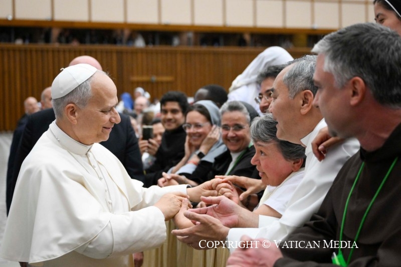 Je suis heureux d’être avec vous, qui représentez tous les consacrés et consacrées du monde, en cette semaine de votre Jubilé à Rome. Je vous accueille avec une étreinte qui vient du cœur, et que je souhaite voir parvenir jusqu’aux régions les plus lointaines de la terre, là où je sais que je peux vous rencontrer. En particulier, en rappelant ce que le pape François vous a déjà dit, je veux à mon tour déclarer que l’Église a besoin de vous et de toute la diversité et richesse des formes de consécration et de ministère que vous représentez (cf. Message pour la Journée mondiale de la Vie Consacrée, 2 février 2023).