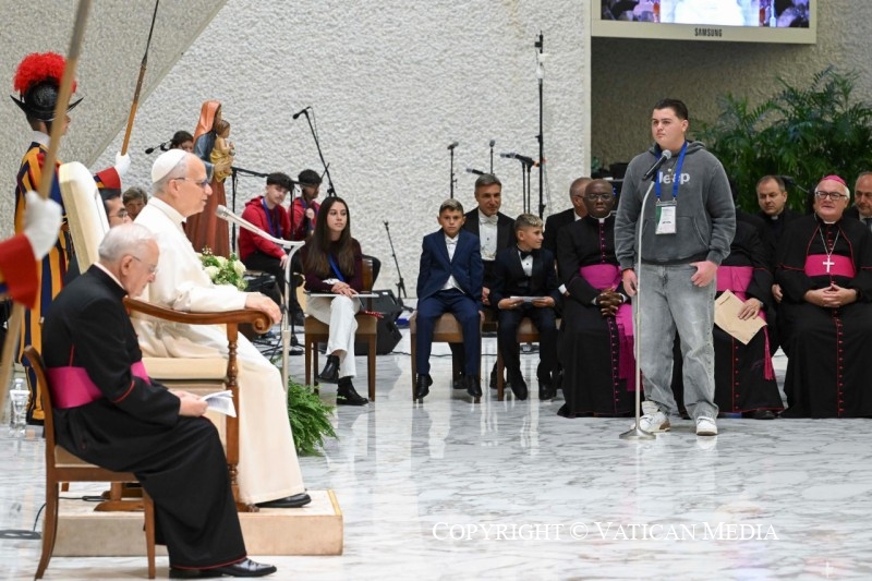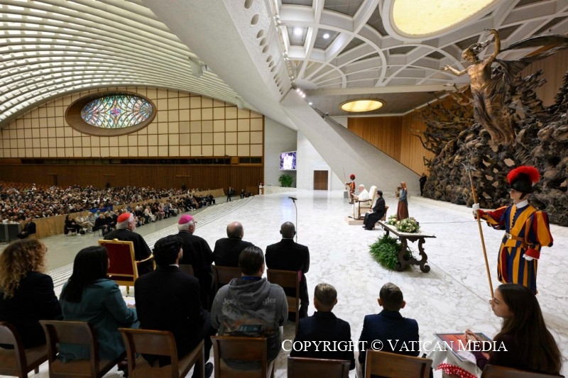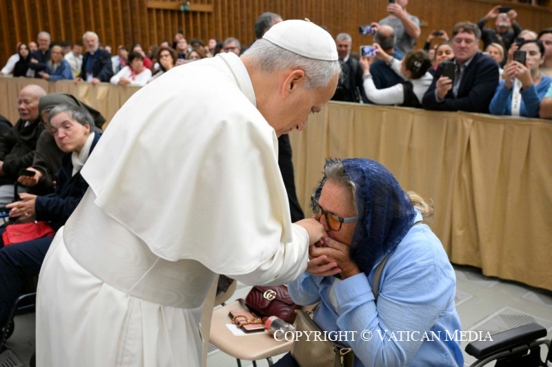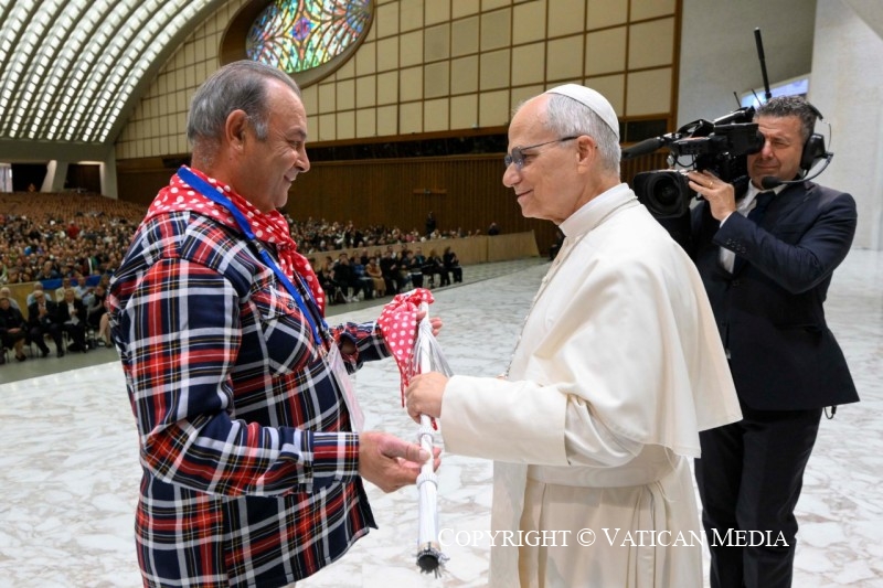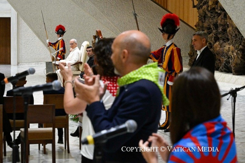 Vous êtes venus à Rome de toute l’Europe – certains même d’au-delà – comme pèlerins de l’espérance en ce Jubilé. Par votre présence, vous nous rappelez que « l’espérance est en marche » – tel est le titre de notre rencontre. Et aujourd’hui, nous nous sentons tous renouvelés par le don que vous apportez au Pape : votre foi solide, votre espérance inébranlable en Dieu seul, votre confiance ferme qui ne cède pas aux épreuves d’une vie souvent vécue aux marges de la société.
