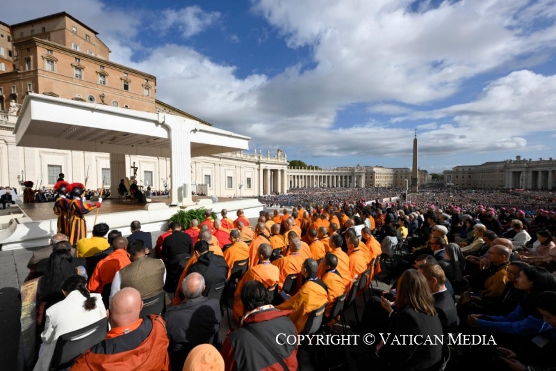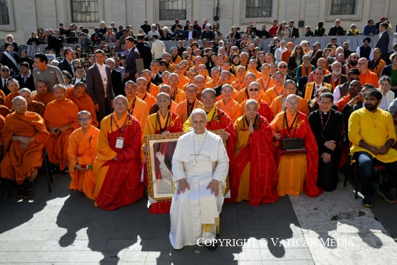 Il y a soixante ans, le 28 octobre 1965, le Concile Vatican II, en promulguant la Déclaration Nostra Aetate, ouvrit un nouvel horizon de rencontre, de respect et d’hospitalité spirituelle. Ce lumineux Document nous enseigne à rencontrer les adeptes d’autres religions non pas comme des étrangers, mais comme des compagnons de route sur le chemin de la vérité ; à honorer les différences en affirmant notre humanité commune ; et à discerner, dans toute quête religieuse sincère, un reflet de l’unique Mystère divin qui englobe toute la création.