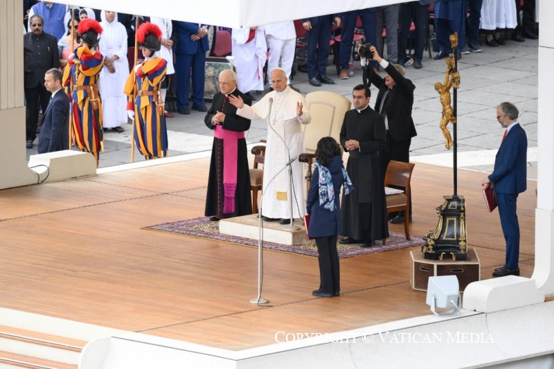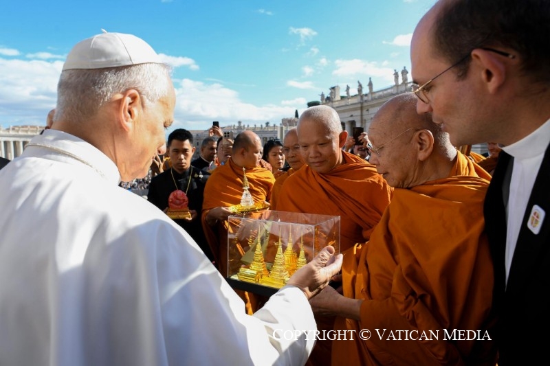 Au centre de la réflexion d’aujourd’hui, en cette Audience Générale consacrée au dialogue interreligieux, je voudrais m’appuyer sur les paroles du Seigneur Jésus à la Samaritaine : « Dieu est esprit, et ceux qui l’adorent, c’est en esprit et vérité qu’ils doivent l’adorer » (Jn 4, 24). Dans l’Évangile, cette rencontre révèle l’essence de l’authentique dialogue religieux : un échange qui a lieu lorsque les personnes s’ouvrent l’une à l’autre avec sincérité, écoute attentive et enrichissement mutuel. C’est un dialogue qui naît de la soif : la soif de Dieu pour le cœur de l’homme et la soif de l’homme pour Dieu. Au puits de Sicar, Jésus franchit les barrières de la culture, du sexe et de la religion. Il invite la Samaritaine à une nouvelle compréhension du culte, qui n’est pas limité à un lieu particulier – « ni sur cette montagne, ni à Jérusalem » – mais qui se réalise en Esprit et en vérité. Ce moment capture le cœur même du dialogue interreligieux : la découverte de la présence de Dieu au-delà de toutes les frontières et l’invitation à le chercher ensemble avec révérence et humilité.