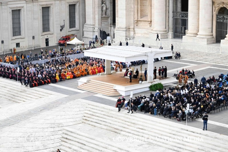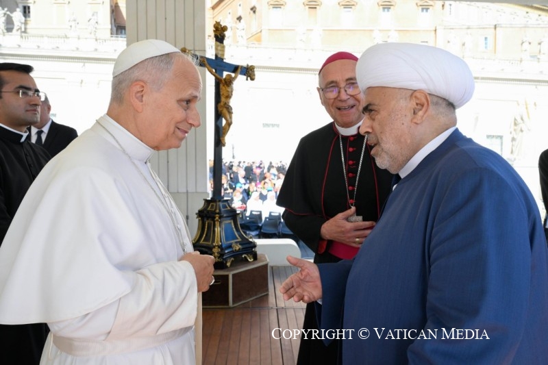 L’esprit de Nostra Aetate continue d’éclairer le chemin de l’Église. Elle reconnaît que toutes les religions peuvent refléter « un rayon de la vérité qui éclaire tous les hommes » (n° 2) et cherchent des réponses aux grands mystères de l’existence humaine, de sorte que le dialogue ne doit pas être seulement intellectuel, mais profondément spirituel. La Déclaration invite tous les catholiques – évêques, clergé, personnes consacrées et fidèles laïcs – à s’engager sincèrement dans le dialogue et la collaboration avec les adeptes des autres religions, en reconnaissant et en promouvant tout ce qui est bon, vrai et saint dans leurs traditions (cf. ibid.). Cela est nécessaire aujourd’hui dans pratiquement toutes les villes du monde où, en raison de la mobilité humaine, nos diversités et nos appartenances spirituelles sont appelées à se rencontrer et à vivre ensemble fraternellement. Nostra Aetate nous rappelle que le vrai dialogue s’enracine dans l’amour, unique fondement de la paix, de la justice et de la réconciliation, tout en rejetant fermement toute forme de discrimination ou de persécution, affirmant l’égale dignité de chaque être humain (cf. NA, 5).