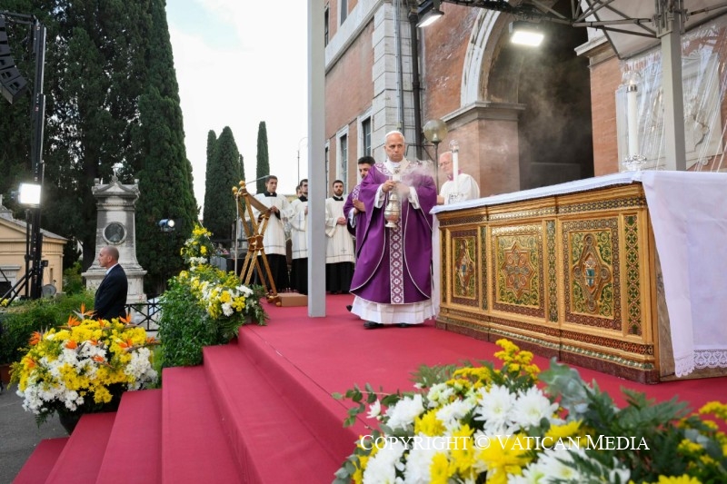 Cette “espérance future” anime notre souvenir et notre prière en ce jour. Ce n’est pas une illusion qui sert à apaiser la douleur de la séparation d’avec les personnes aimées, ni un simple optimisme humain. C’est l’espérance fondée sur la résurrection de Jésus, qui a vaincu la mort et nous a ouvert le passage vers la plénitude de la vie. Il est, comme je l’ai rappelé dans une récente catéchèse, « le point d’arrivée de notre marche. Sans son amour, le voyage de la vie deviendrait une errance sans but, une erreur tragique sans destination. […] Le Ressuscité nous garantit un abri sûr, il nous ramène à la maison, où nous sommes attendus, aimés, sauvés » (Audience générale, 15 octobre 2025).