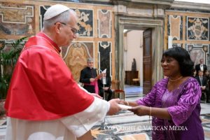 Au moment où vous commencez votre mission auprès du Saint-Siège, je vous assure du soutien de la Secrétairerie d’État. Puisse votre service contribuer à ouvrir de nouvelles portes au dialogue, à favoriser l’unité et à faire progresser cette paix à laquelle la famille humaine aspire si ardemment. Sur vous, vos familles et les peuples que vous représentez, j’invoque volontiers les abondantes bénédictions divines.