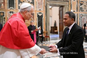 Dans la Salle Clémentine, le 6 décembre, le Saint-Père a reçu en audience les Ambassadeurs de l’Ouzbékistan, de la Moldavie, du Bahreïn, du Sri Lanka, du Pakistan, du Liberia, de la Thaïlande, du Lesotho, de l’Afrique du Sud, des Fidji, de la Micronésie, de la Lettonie et de la Finlande, venus présenter leurs Lettres de créance.