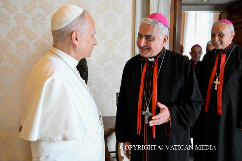 que la paix soit avec vous ! C’est une joie de vous rencontrer ici à Rome, réunis pour la célébration de votre Synode, destiné à accomplir un acte fondamental pour la vie de l’Église chaldéenne de Bagdad : l’élection du nouveau patriarche. Je suis heureux de vous rencontrer en cette période de précieux discernement ecclésial. À travers vous, je salue cordialement les prêtres, les religieux et les religieuses, les séminaristes et tous les chers fidèles de l’Église chaldéenne, tant sur son propre territoire que dans la nombreuse diaspora dispersée à travers le monde. Je sais que beaucoup sont unis spirituellement à ce moment, y participant intensément par la prière.